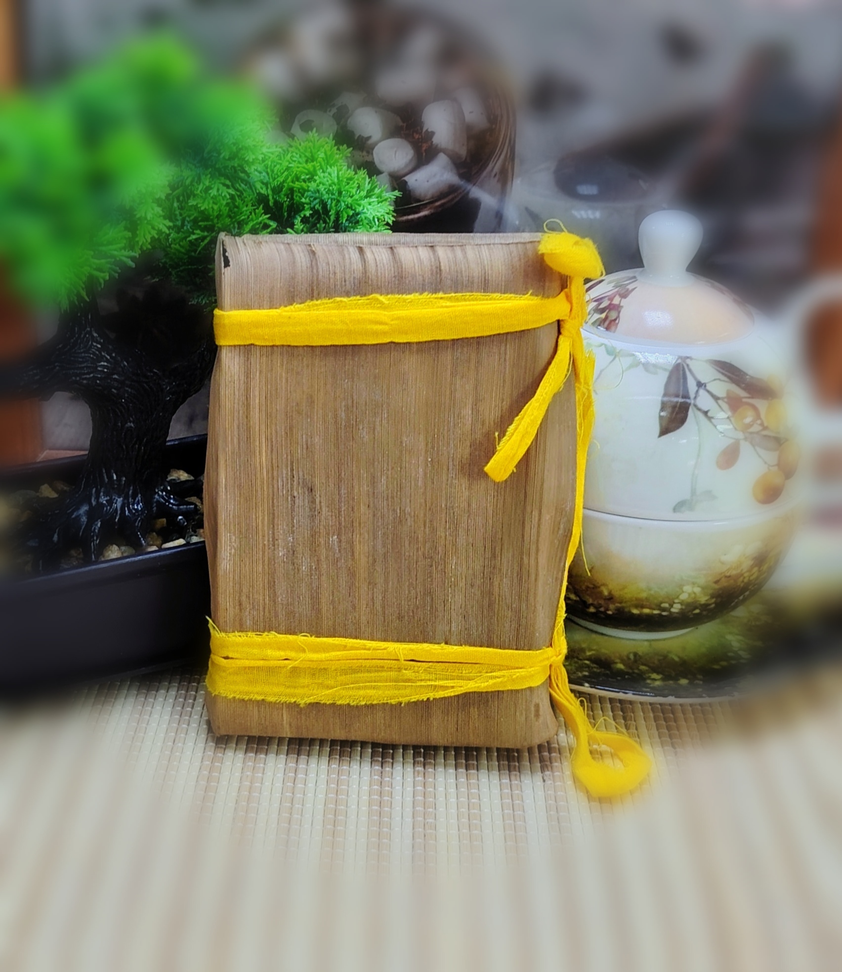 Элитный выдержанный китайский чай, прессованный в виде плитки весом 250 грамм, завернутый в бамбуковый лист. Вкус пуэра мягкий, не резкий, почти без терпкости. Аромат напитка древесно-ореховый, с нотками сухофруктов. Цвет настоя насыщенный коричневый.